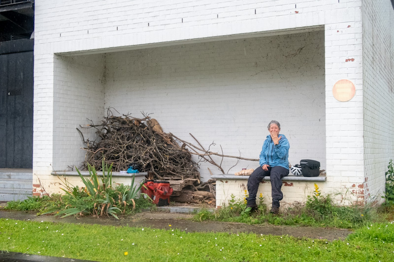 We lunchen tussen de middag met het brood dat we in Givet gekocht hebben. We vinden een verlaten pand langs de Maas waar we eigenlijk niet mogen zitten maar je moet toch wat om droog te zitten.